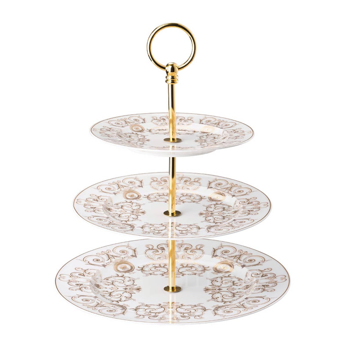 The Versace Etagere Medusa Gala is a striking fusion of elegance and functionality, designed to enhance any setting with its refined craftsmanship and luxurious detailing. Made from the finest porcelain, it exudes sophistication, making it a captivating centerpiece for both grand celebrations and intimate gatherings. Its tiered design allows for an elegant presentation of desserts, pastries, or appetizers, adding a touch of prestige to any dining experience. A perfect choice for those who appreciate timeless style, this Versace Etagere Medusa Gala is not only a functional serving piece but also a decorative statement that reflects Versace’s legacy of excellence.