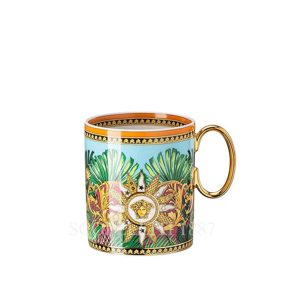 The Versace Jungle Animalier Mug with Handle is a striking porcelain piece that brings the bold elegance of the Jungle Animalier series to your coffee or tea moments.