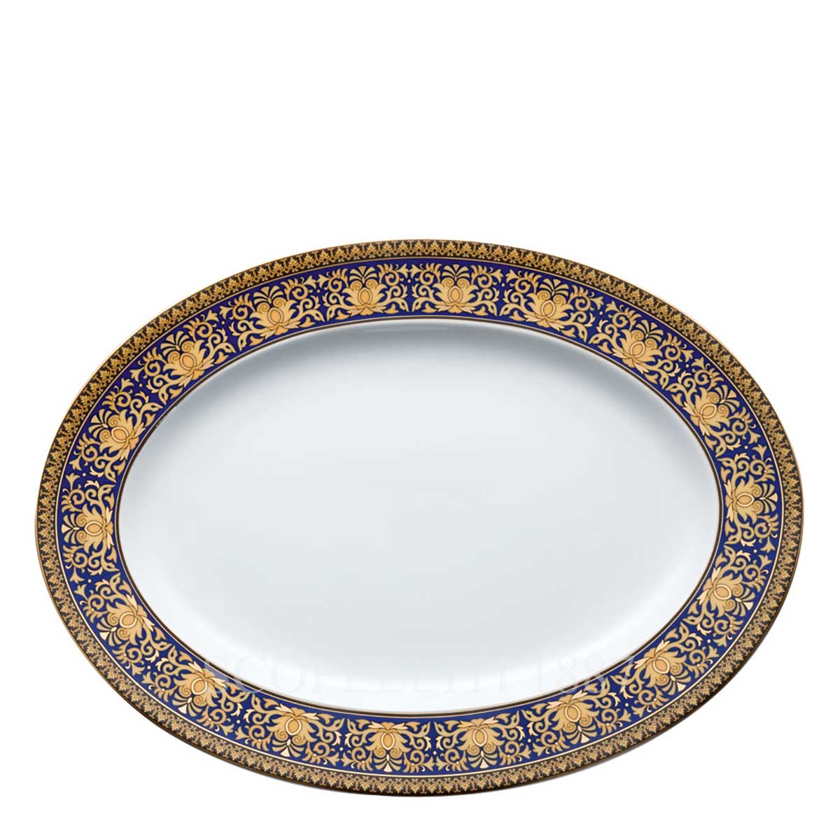 The Versace Platter 34 cm Medusa Blue is a striking blend of artistry and functionality, designed to elevate any dining experience. Showcasing the iconic Medusa motif, intricate gold detailing, and deep blue tones, this exquisite platter serves as both a practical piece and a statement of refined style. Its versatile size makes it ideal for presenting appetizers, main courses, or desserts with sophistication, whether for formal dinners, festive gatherings, or everyday elegance.