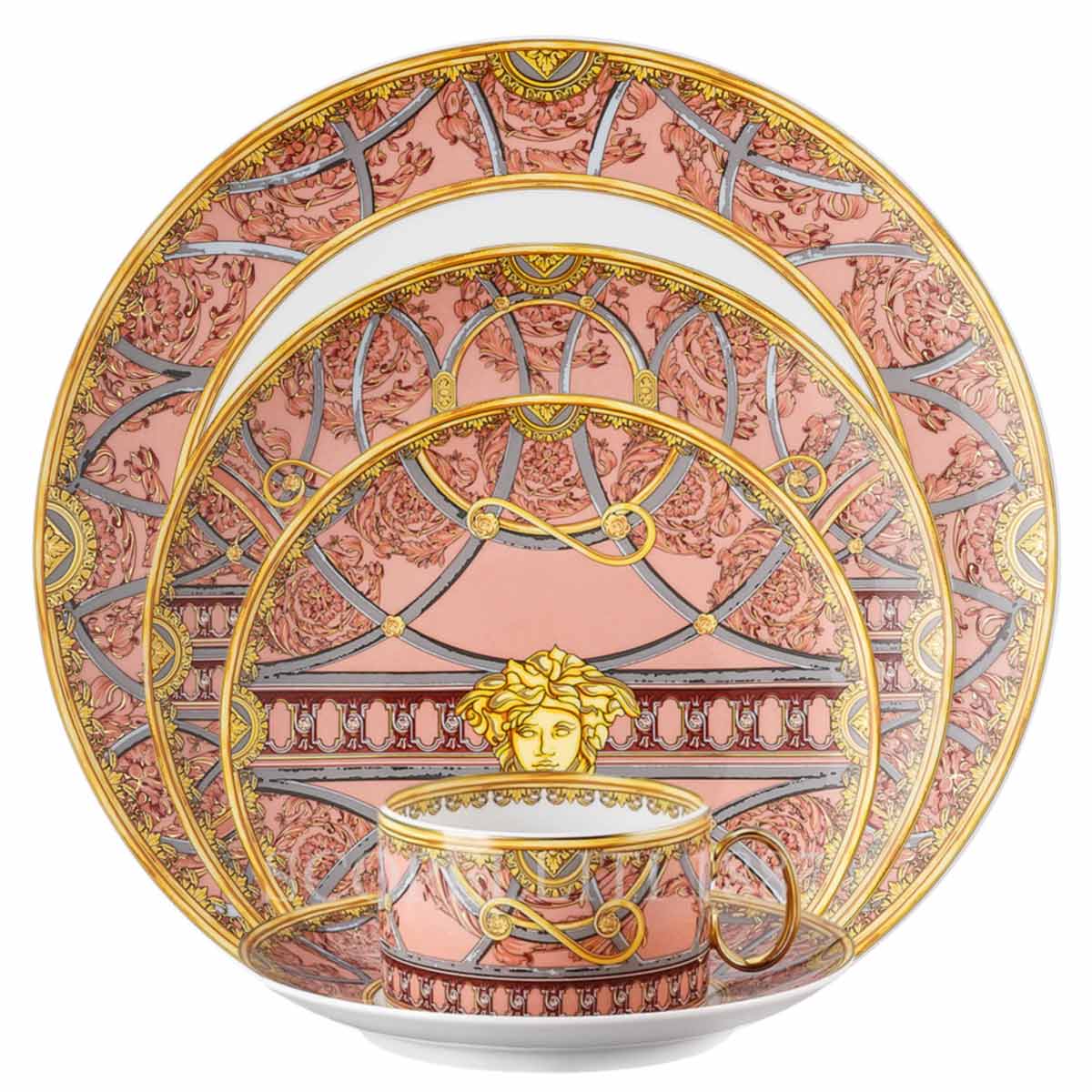 Ideal for those looking to add sophistication to their dinnerware collection, this Versace Scala del Palazzo Rose 5 Piece Place Setting stands as a symbol of refined luxury and timeless Italian elegance. For those who prefer a different color, the Versace La Scala del Palazzo green 5 Piece place Setting offers the same exquisite design in a delicate rose hue.