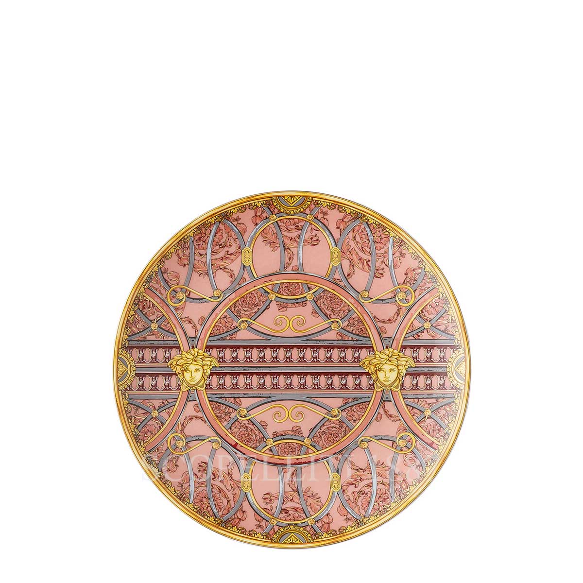 The La Scala del Palazzo collection, a collaboration between Rosenthal and Versace, is a stunning fusion of Italian opulence and modern design. Inspired by the swirling metallic spirals of the marble staircase at the Versace Milanese palazzo on Via Gesù, this fine porcelain dinnerware collection reflects Versace’s extraordinary craftsmanship and Rosenthal’s expertise in contemporary tableware.