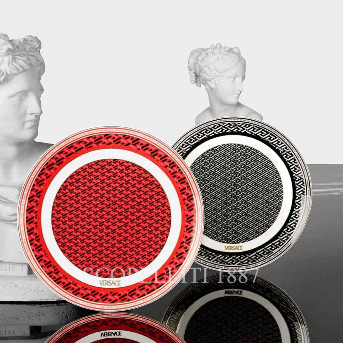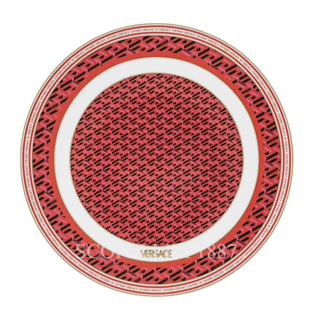 The Versace Service Plate La Greca Signature Red is a luxurious piece of tableware that combines timeless elegance with modern design. Featuring the iconic La Greca pattern in a bold black color, this plate adds sophistication to any dining setting. Crafted from fine porcelain, it showcases Versace’s distinctive style, making it a perfect statement piece for both everyday meals and special occasions.