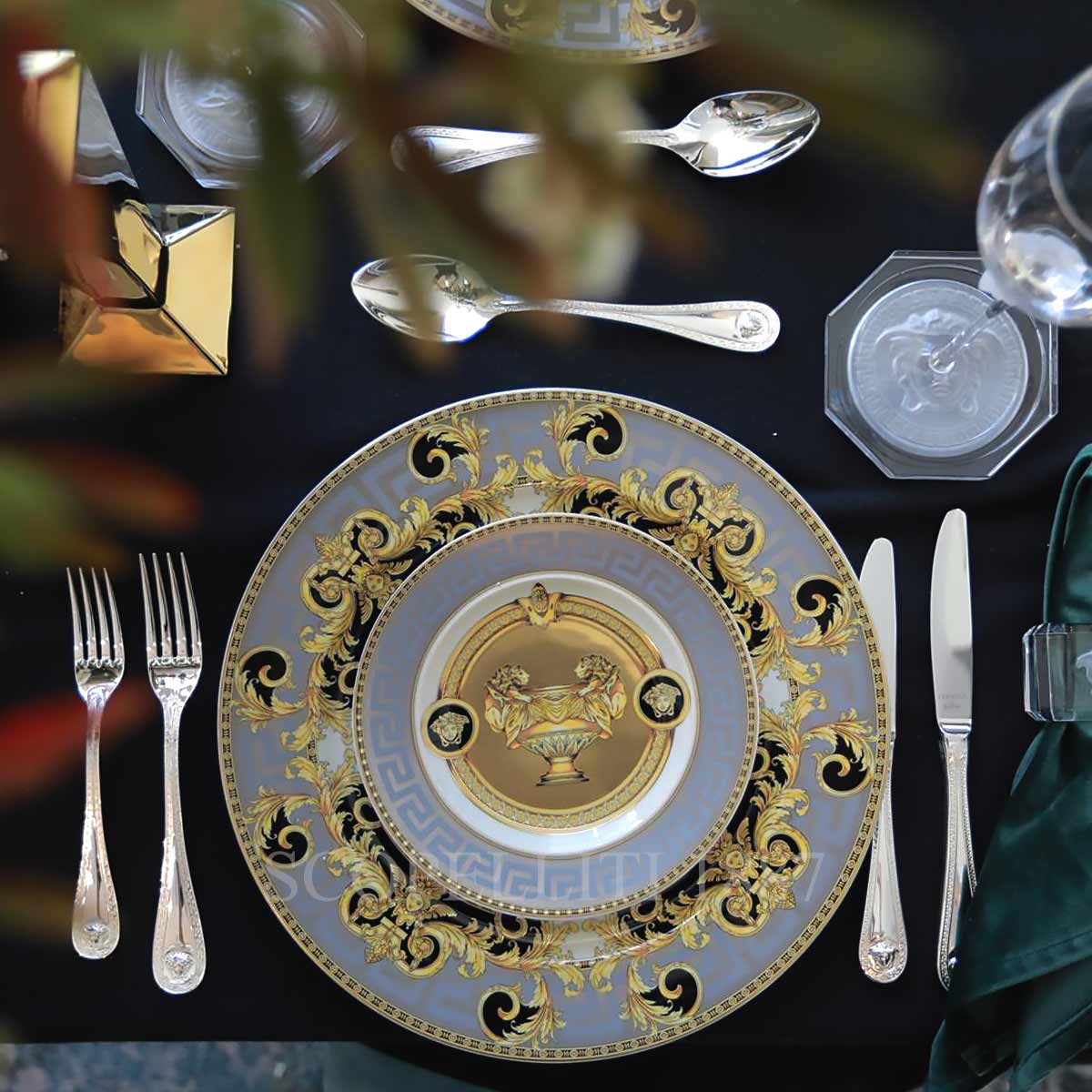 Part of the prestigious Prestige Gala Gold tableware, this plate reflects Versace’s signature aesthetic, blending baroque influences with modern craftsmanship. This dining set is known for its lavish gold detailing and exquisite patterns, making each piece a true work of art.