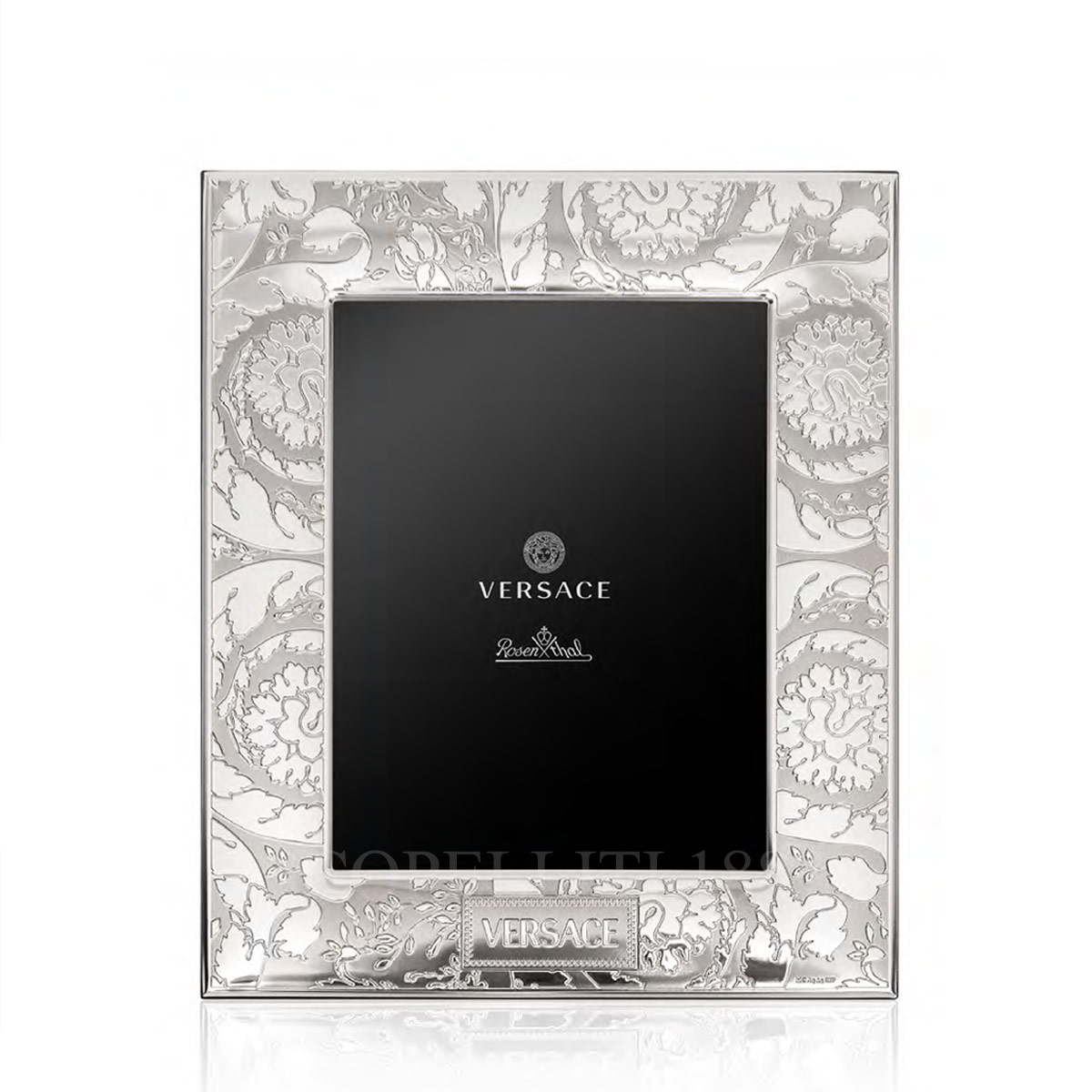 Enhance your home or office décor with the timeless elegance of the Versace Silver Picture Frame medium size, measuring 15 × 20 cm (6 × 8 inches). Crafted from premium metal with a polished silver-tone finish, this luxury photo frame features a sophisticated damask motif that epitomizes classical beauty and refined craftsmanship. The subtle silver-on-silver damask pattern adds a graceful and elegant touch, making it perfect for showcasing cherished photographs, artwork, or keepsakes. Designed with versatility in mind, this medium-sized frame complements a wide range of interior styles—from traditional to contemporary. Made in Italy with meticulous attention to detail, the durable metal construction ensures lasting quality and a radiant finish that brightens any space. Whether displayed on a desk, shelf, or mantel, this Versace silver picture frame medium size with damask motif transforms your memories into stylish statements of heritage and luxury. Complete with the original Versace branded box, this frame is an ideal gift for weddings, anniversaries, or special occasions.