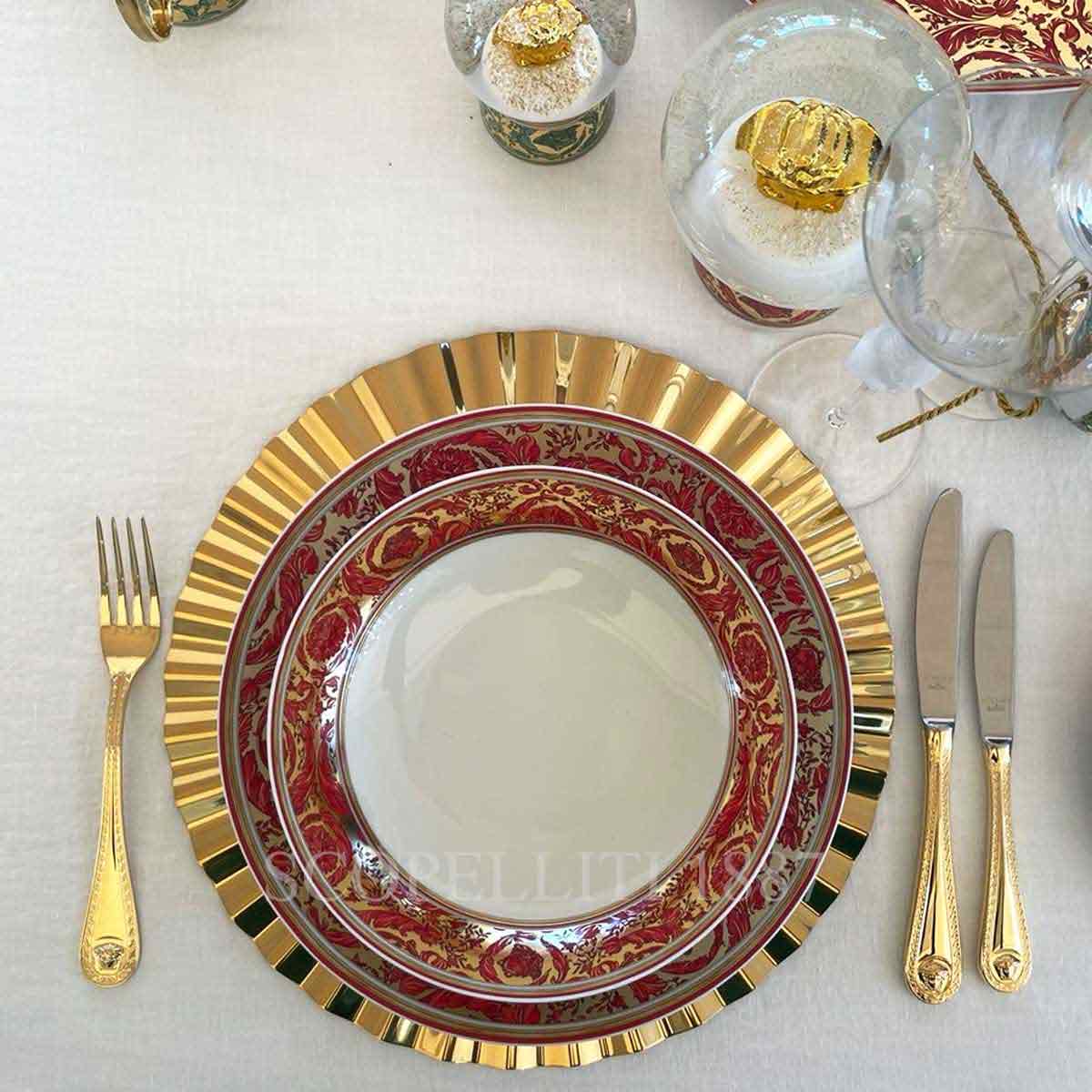 The Versace Soup Plate Medusa Garland Red is a stunning addition to your tableware collection, combining opulent design with timeless elegance. Crafted from fine porcelain, it features the iconic Medusa motif, complemented by luxurious gold accents and a rich red color. Perfect for both everyday use and special occasions, this soup plate elevates your dining experience and adds a regal touch to your table setting. Ideal for creating a festive ambiance during holiday gatherings, the plate is also a perfect Christmas gift for those who appreciate luxury and fine craftsmanship. Whether used for serving soups, salads, or main courses, it brings sophistication to any meal.