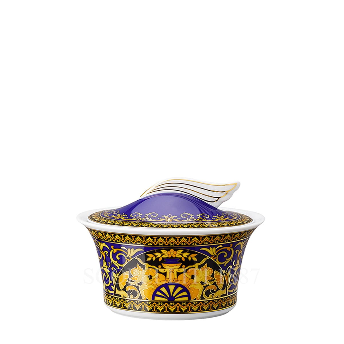 The Versace Sugar Bowl Medusa Blue is a sophisticated addition to any tea or coffee set, seamlessly blending elegance with practicality. Adorned with the iconic Medusa motif, intricate gold detailing, and deep blue tones, it brings a refined touch to any table setting. Designed to complete your tableware collection, this exquisite piece is perfect for those who appreciate fine craftsmanship. Its timeless appeal makes it an exceptional gift for tea and coffee lovers who value both beauty and functionality.