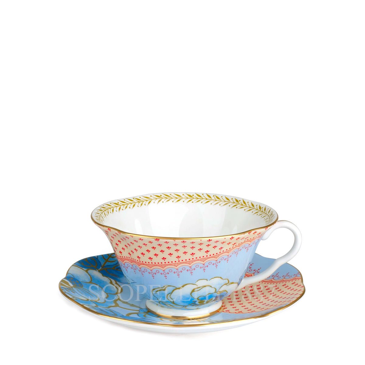 This Blue Peony teacup and saucer from our Butterfly Bloom collection is beautifully decorated with a harmonious peach and blue floral design. A delicate leaf pattern around the inner rim adds to the traditional appeal. The cup’s elegant fluted edge and curved handle are finished in sumptuous 22-carat gold. With its vibrant colours, the Floral Bouquet teacup and saucer is a joy to drink from. This piece combines the elegance of Wedgwood tradition with the whimsy of our Butterfly Bloom collection and will transform every tea break into a special occasion.
