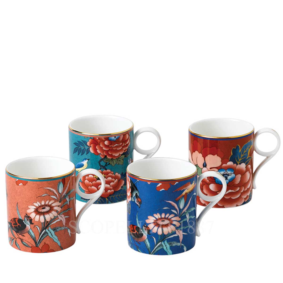 Wedgwood Set of 4 Mugs Paeonia Blush in fine bone china is a wonderful gift for any occasion. Gift box included.