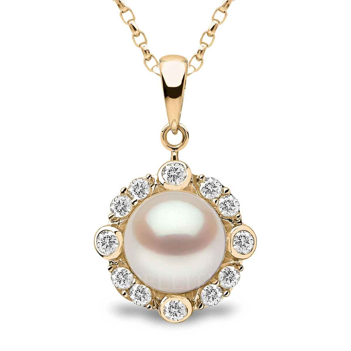 Cast from polished 18kt yellow gold, the Yoko London Trend diamond pearl necklace boasts a delicate freshwater pearl framed by white diamonds for a sparkling finish.